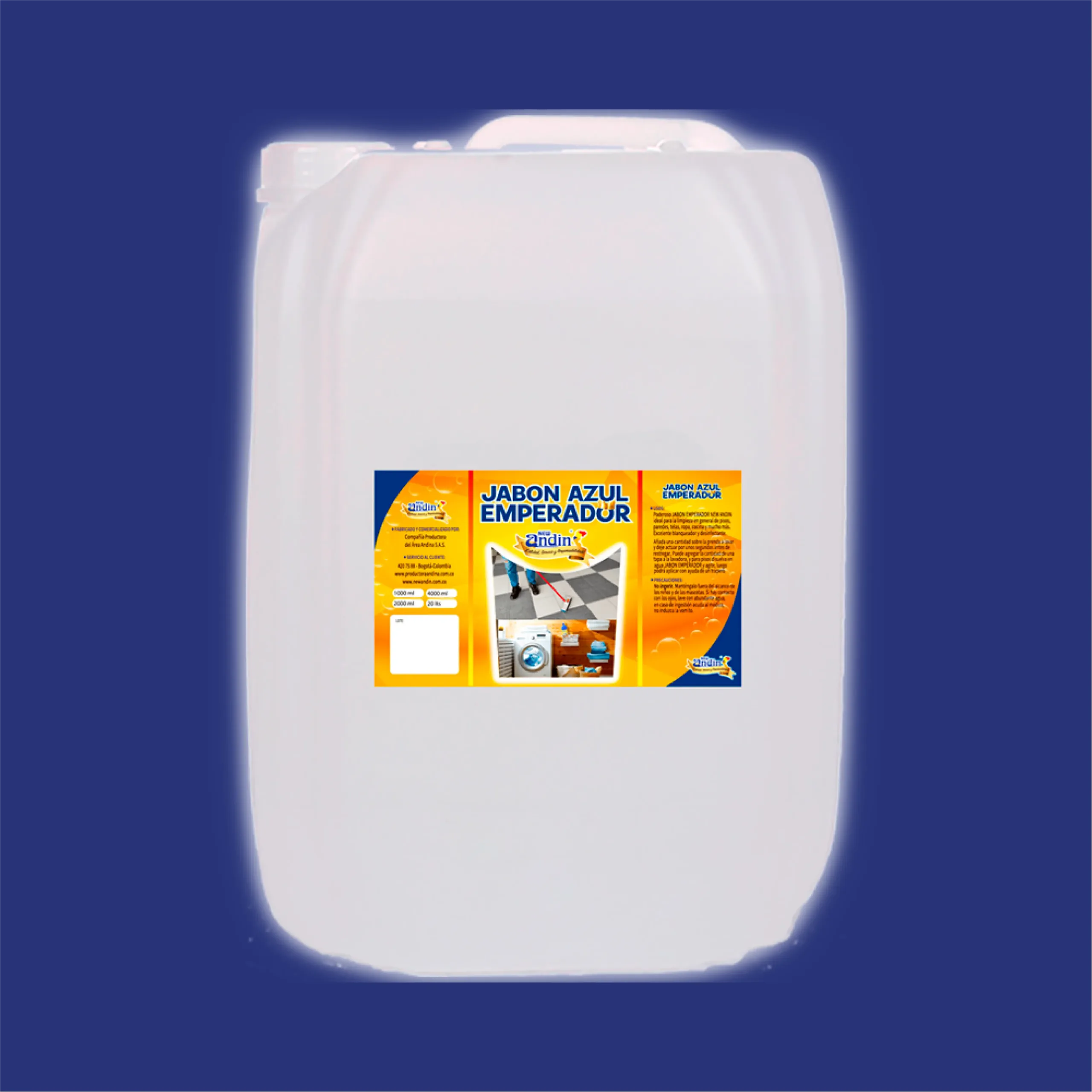 Poderoso JABON EMPERADOR New Andin, ideal para la limpieza en general de pisos, paredes, telas, ropa, cocina y mucho mas. Excelenter Blanqueador y Desinfectante, Añada una cantidad sobre la prenda a lavar y deje actuar por unos segundos antes de restregar, puede agregar la cantidad de una tapa de lavadora, y para pisos disuelva en agua JABON EMPERADOR y agite, luego podrá aplicar con ayuda de un trapero.